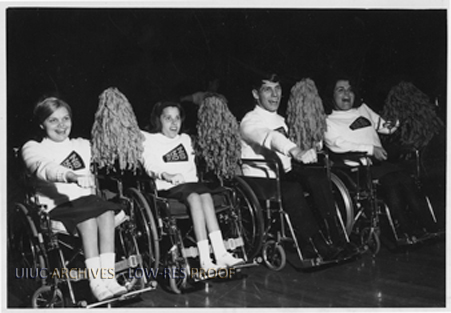 Cheerleaders in wheelchairs | University of Illinois Archives