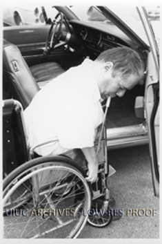 Man in Wheelchair Entering Car | University of Illinois Archives