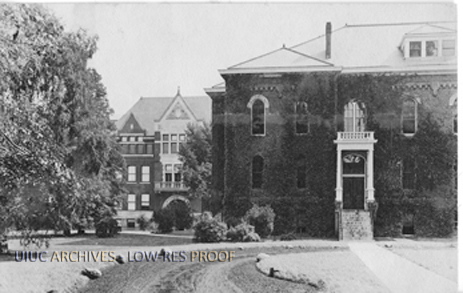 Harker Hall viewed from the east with the Natural History Building in the background.