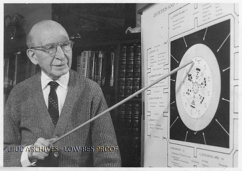 Joseph Tykociner points to a diagram, presumably about zetetics.