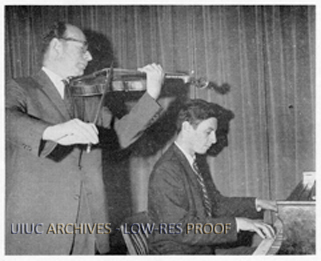 Paul Rolland, professor of music and chairman of the string division at the University, plays the violin while Professor Howard Karp plays the piano.