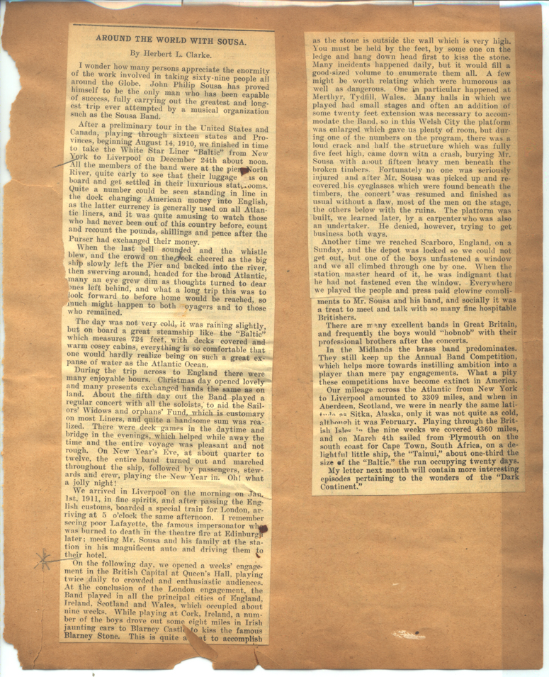 ScrapbookPage 2: Around the World with Sousa, by Herbert L. Clarke, 1916