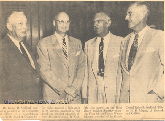 George Stoddard, Coleman Griffith, Wayne Johnson and H. B. Megran | University of Illinois Archives