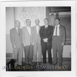 Caption accompanying photo reads, "New Officers (left to right): Larry Lewis, President; George Smith, Ag Council Representative; Roger Gallup, Treasurer; Larry Casey, Vice President; Charles Heathman, Secretary; Dick Snodgrass, Reporter."
