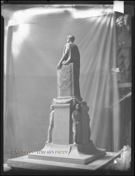 Model of Lorado Taft's Soldier and Sailor's Monument viewed from the side.