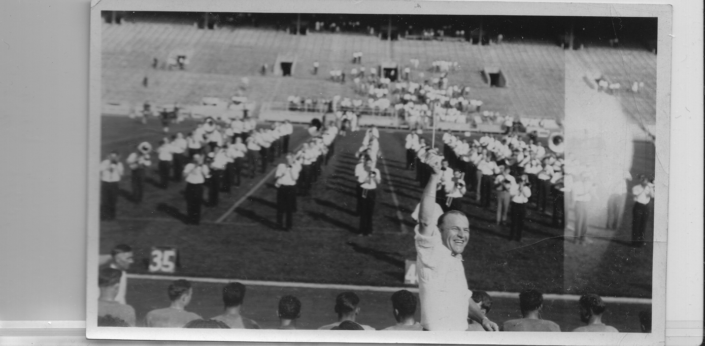 Raymond Dvorak conducting the Marching Illini and football crowd | The Sousa Archives and Center for American Music
