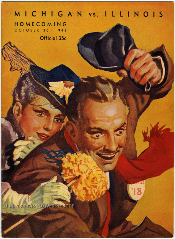Cover of the program from the 1943 Homecoming game between the Illini and the Wolverines at Memorial Stadium. Illinois lost 6-42.