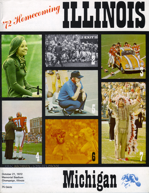 Cover of the program for the 1972 homecoming game between the Illini and the Wolverines at Memorial Stadium in Champaign. Illinois lost 7-31.