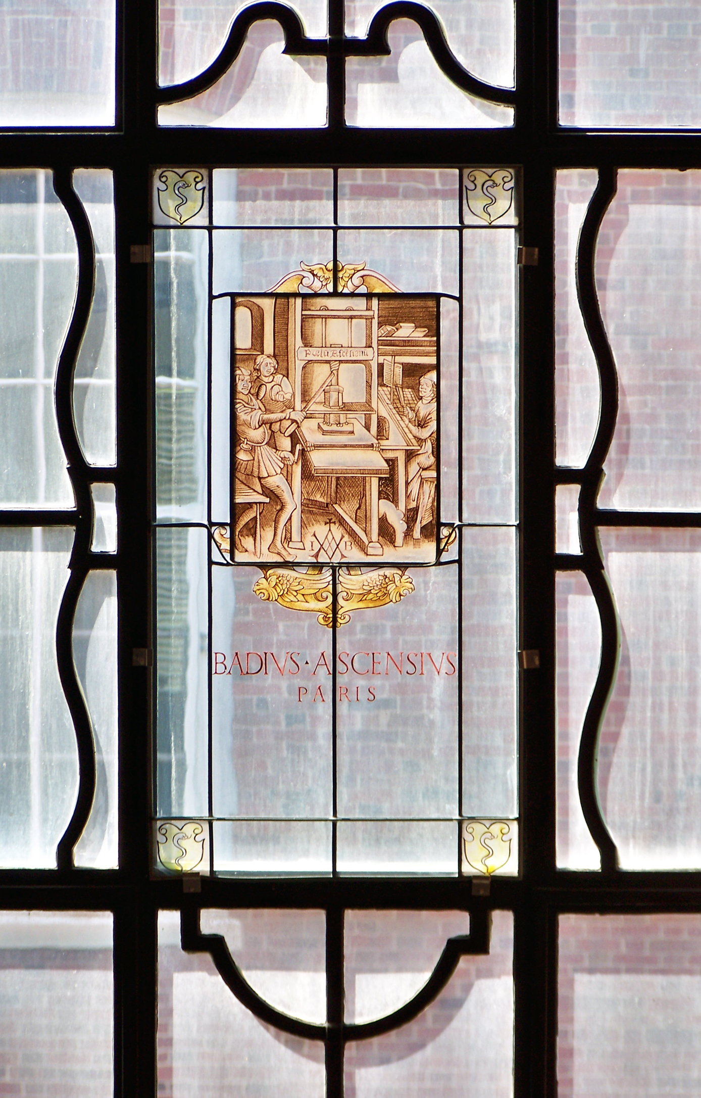Printers' Mark Window - Badius Ascensius | University of Illinois Archives