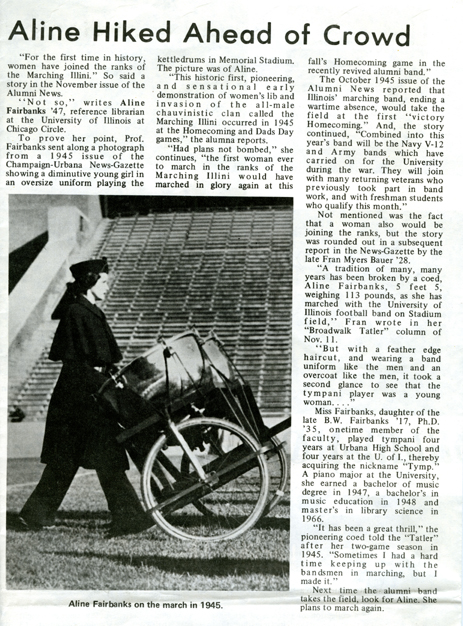 Aline Faribanks marching on the field | The Sousa Archives and Center for American Music
