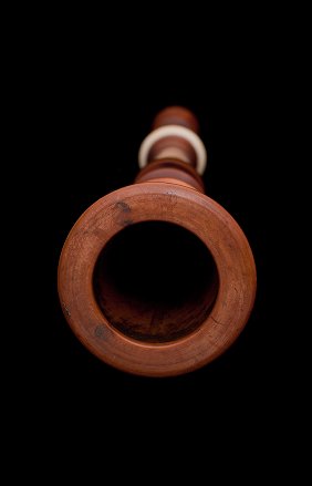 wooden, with open tone holes and ivory ferrules.