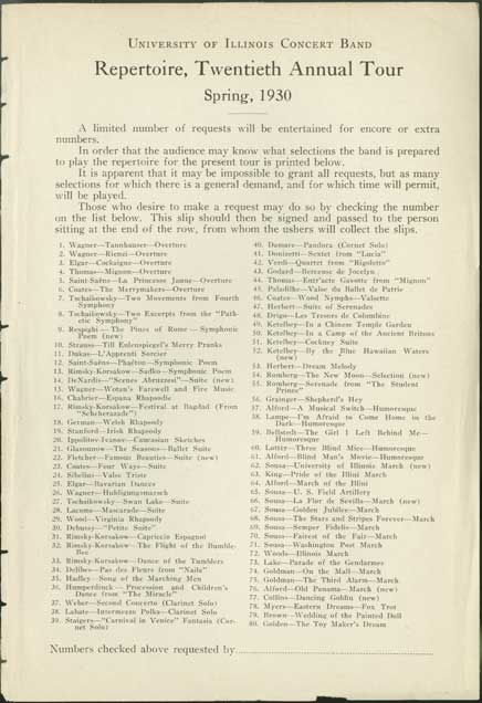 Twentieth Annual Tour Repertoire University of Illinois Concert Band | The Sousa Archives and Center for American Music