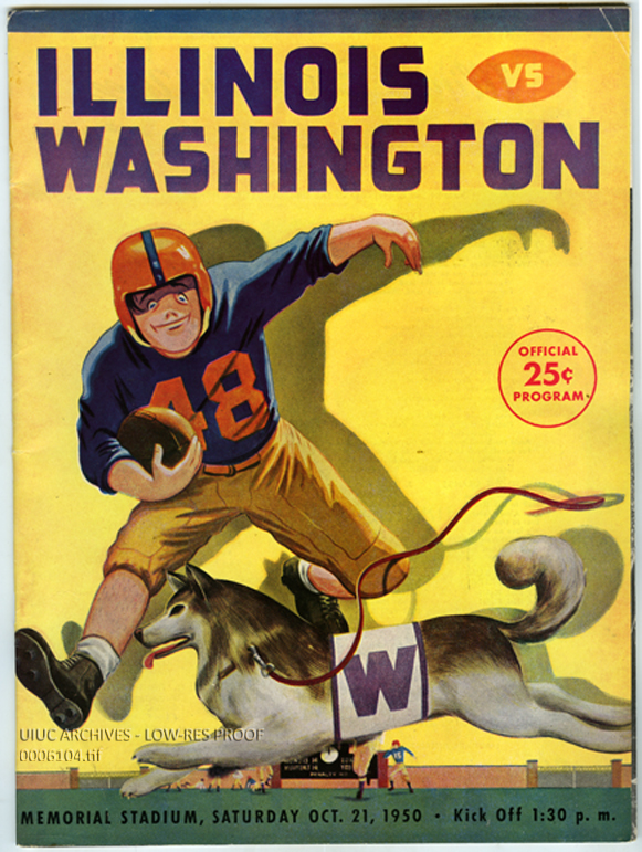 Cover of the program from the 1950 home game against the University of Washington, in which Illinois beat the Huskies, 20-13