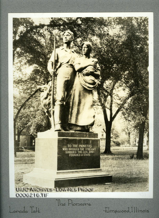 Photograph of Lorado Taft's sculpture The Pioneers in Elmwood, Illinois