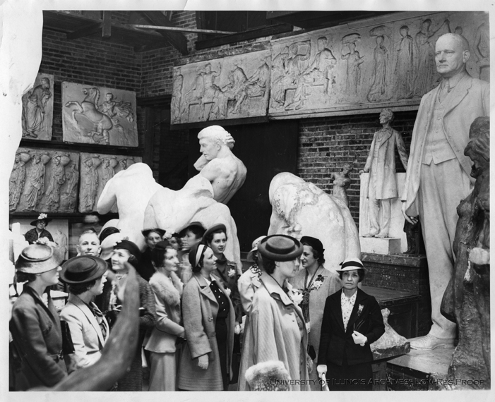 Photo of crowd gathered at Lorado Taft's Midway Studios in Chicago.