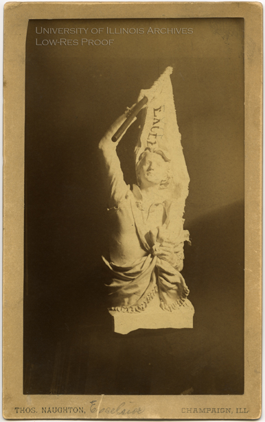 Photograph of the sculpture Excelsior, created by Lorado Taft for the Philomathean Society at the University of Illinois.