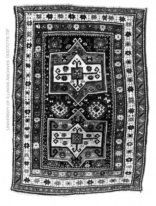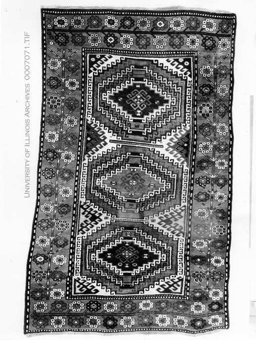 Black and white photographs of oriental rugs found in the home of the President of the University.