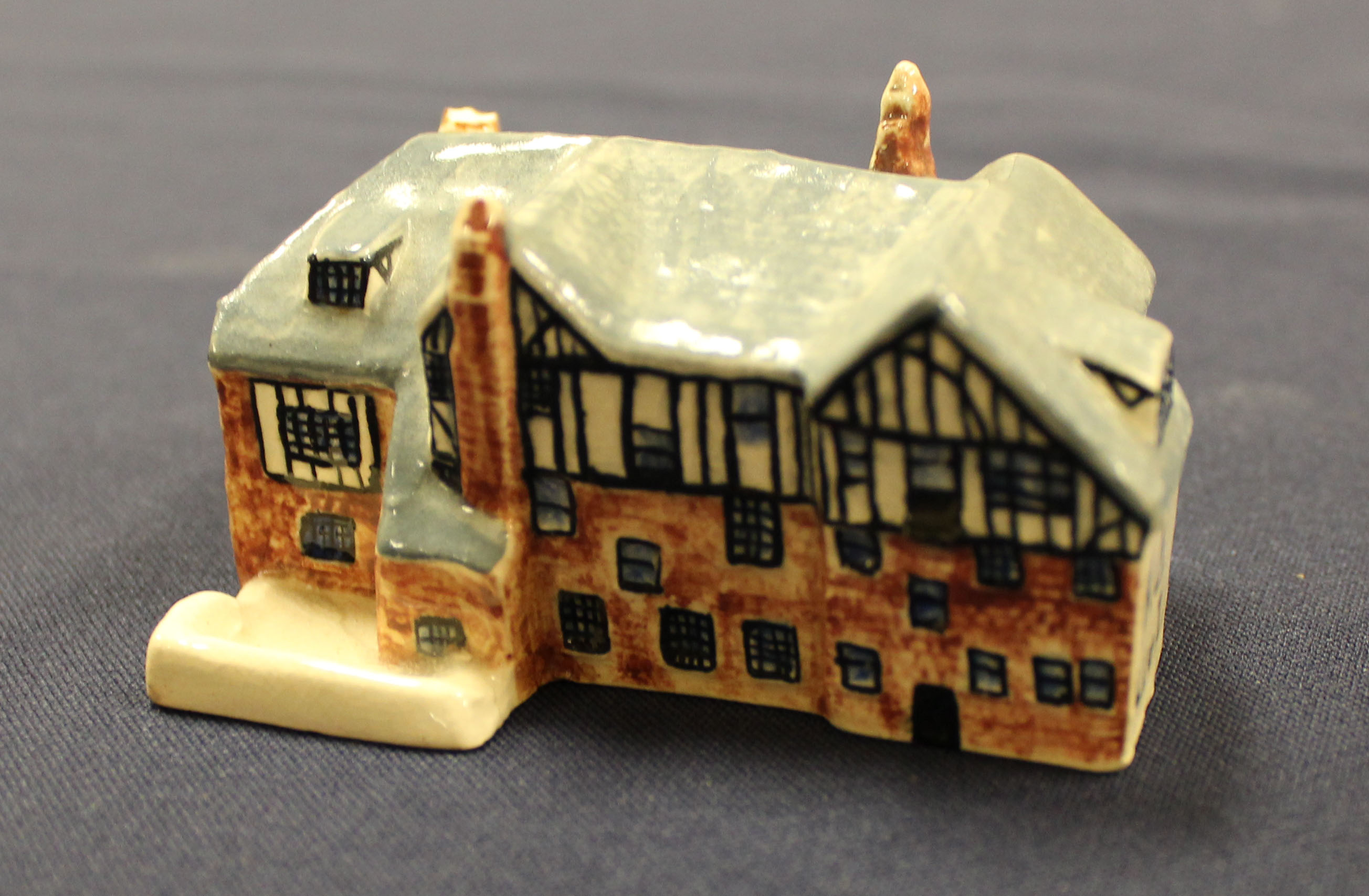 Miniature ceramic replica of the Kappa Delta sorority house at University of Illinois. This belonged to Madelyn Gertrude Bentley Blatt from 1929.