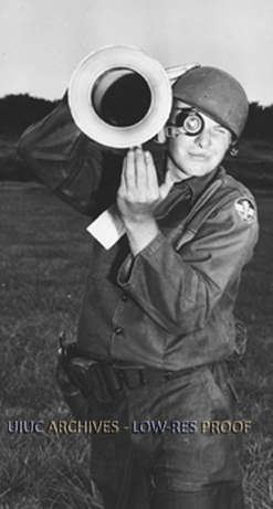 Caption on back: Cadet Orville L. Krumdick of the University of Illinois, Urbana, Illinois is shown sighting a 88 mm/3.5 in. Rocket Launcher. Training with the 3.5 MM Rocket Launcher is but one of of a number of varied and vigorous areas of instruction offered