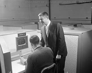 Dr. Donald Bitzer at the PLATO III Terminal | University of Illinois Archives