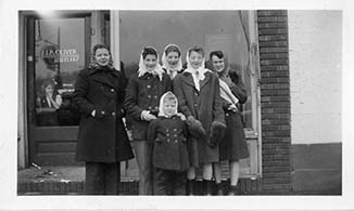 Item 1: Doris Adam, Janet, Ollie Rudibaugh, Wanda Rudibaugh, Marjorie McClain, Linda, at Lisbon, OH, 1945Subjects: