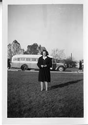 Item 7: Marjorie Davis (Viola), from Springfield, Ohio. Kryl bus in rear, taken at Partkersburg, W. Va., 1945