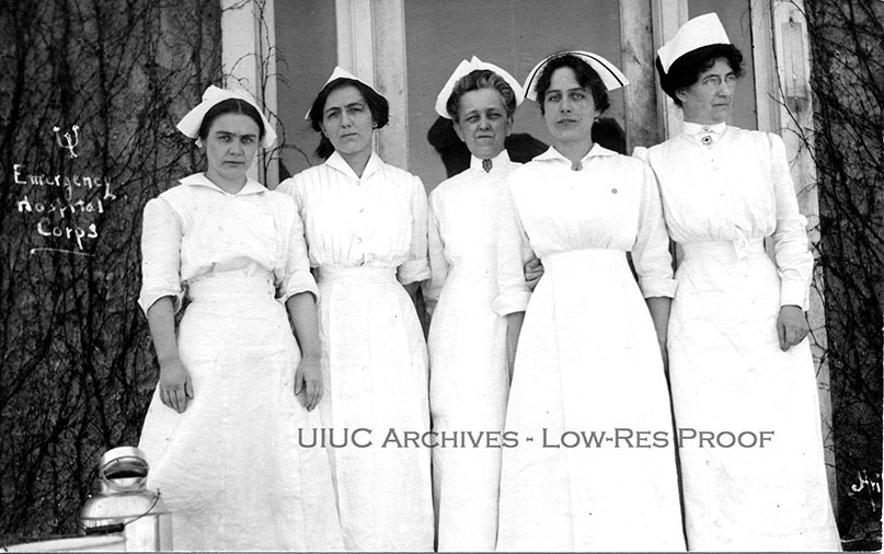 Nurses from Chicago who attended scarlet fever patients at the University of Illinois emergency hospital.
