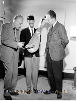 Thomas Binkley, music faculty member, Lui Tsun-Yuen, Alan Curtis, graduate student. Chinese artist is the Western world's only performer on the "pipa" which he holds.