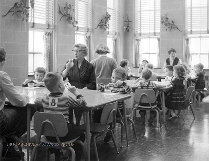 Children at tables in Child Development Lab (2) | University of Illinois Archives
