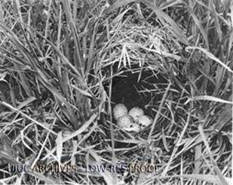 Nest in Brush with speckled eggs | University of Illinois Archives