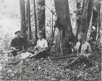 Three campers in woods | University of Illinois Archives