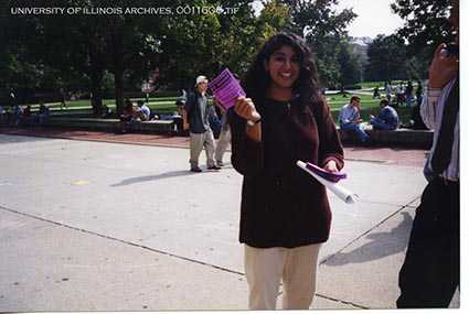 Student members of the Volunteer Illini Project work the Project Vote campaign in 1996