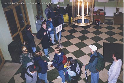 Student members of the Volunteer Illini Project work the Project Vote campaign in 1996