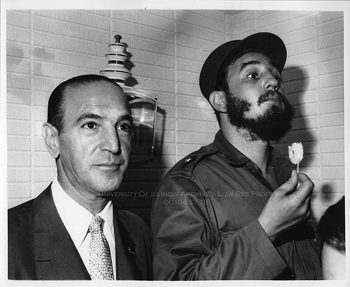 Unknown man and Fidel Castro | University of Illinois Archives