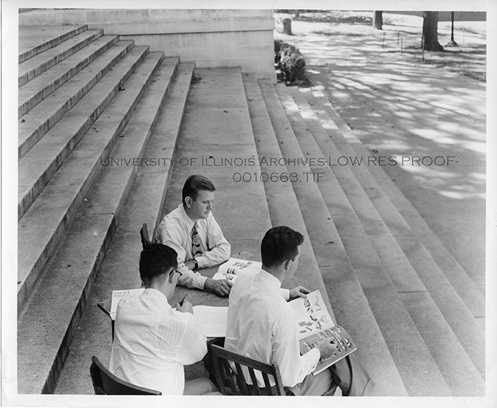 Students Studying On Foellinger Auditorium Steps | University of Illinois Archives
