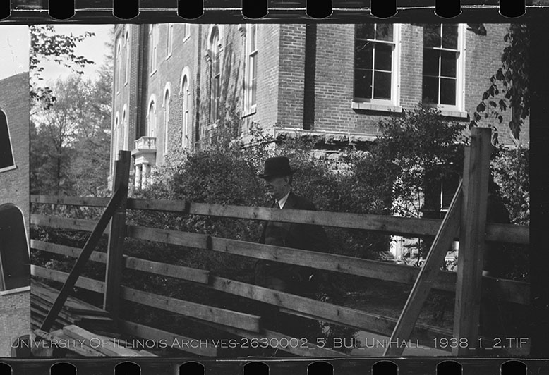 Man stands near University Hall Demolition | University of Illinois Archives