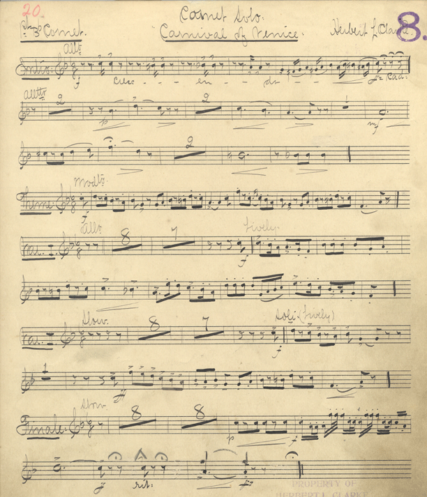 1st cornet part to Clarke solo to "Carnival of Venice"