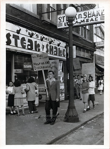 Students Protest Outside Steak 'n Shake | University of Illinois Archives