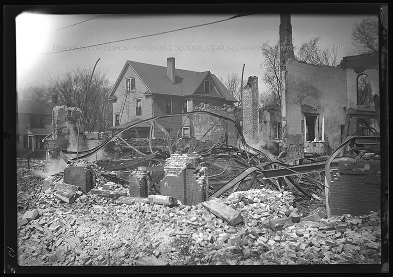 Remains of the University Place Christian Church, now UniPlace Christian Church, following a boiler fire on March 7th, 1932. Originally ruled an arson, the building was later classified as an accidental fire and rebuilt 6 years later.