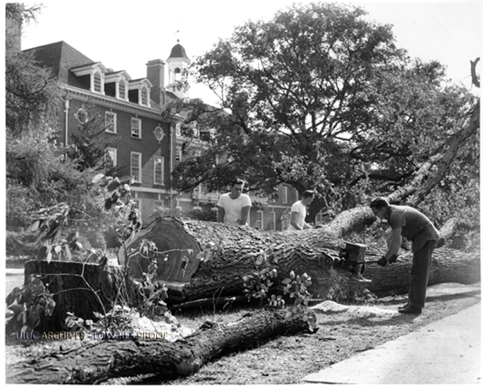 3 Workers Cutting Tree Down | University of Illinois Archives