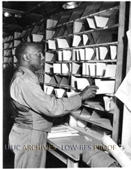 Worker filing campus mail | University of Illinois Archives