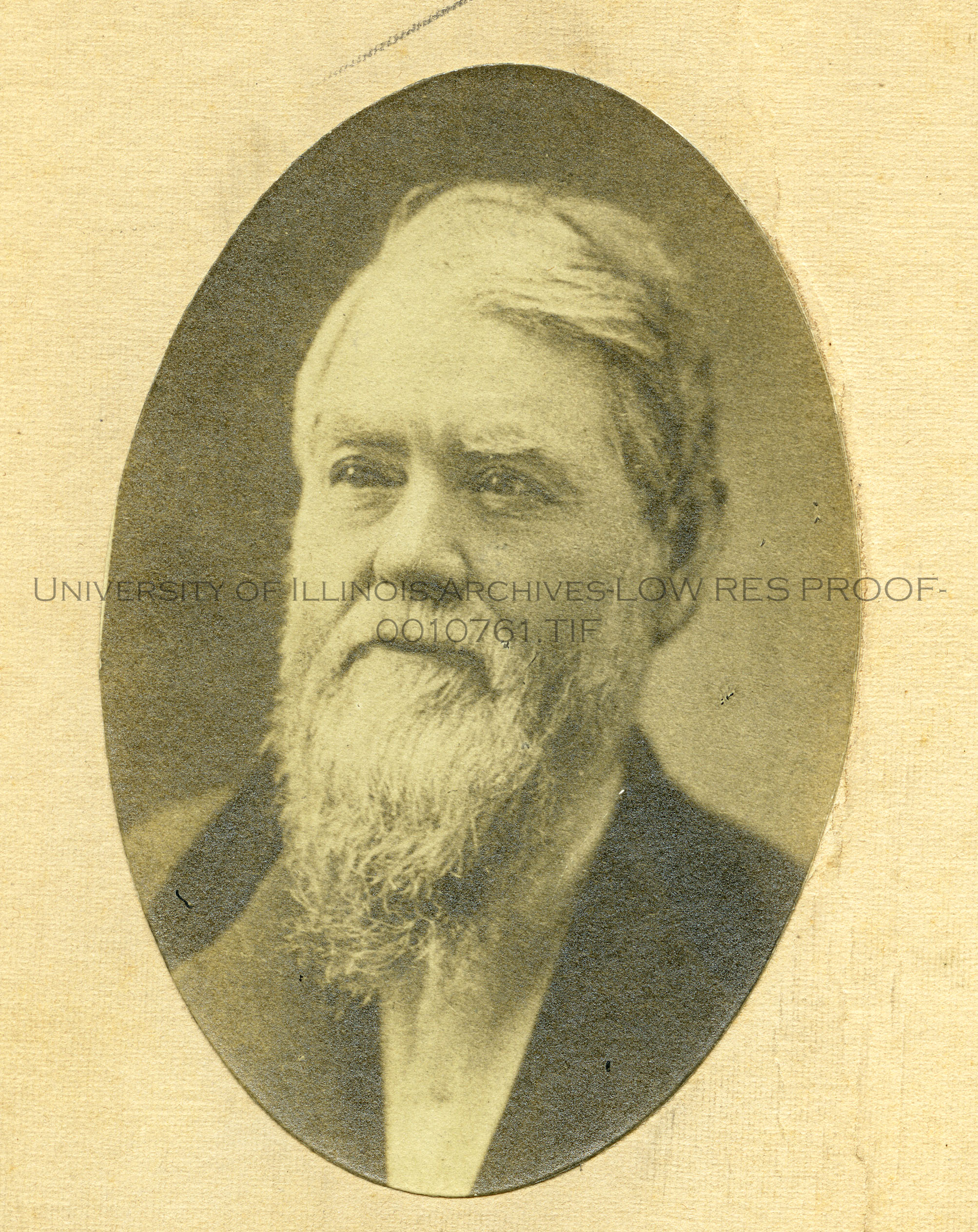 Featured is a portrait of Matthias Dunlap. Dunlap was a former university trustee in the late 19th century, often serving as a foil to regent John MIlton Gregory.