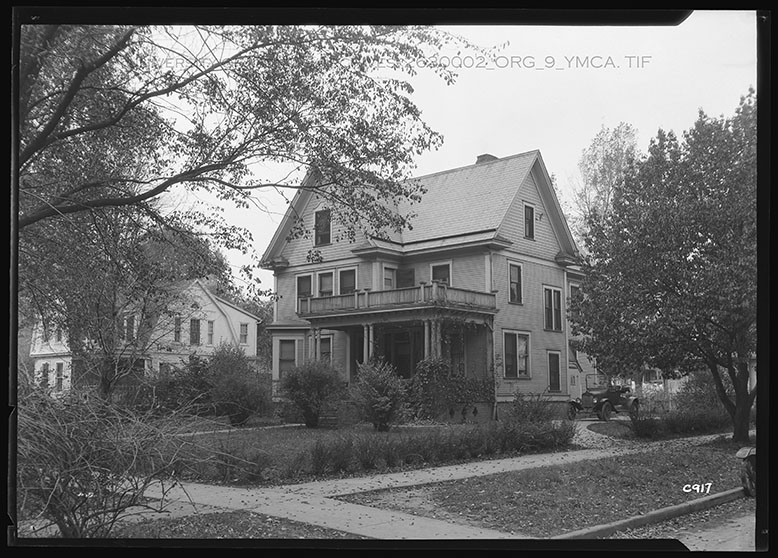 Featured is the temporary YMCA Student house on 6th Street. After the YMCA began renovating their Wright St. Home, the organization bounced around on campus to a few locations. Per a Daily Illinoi article of 1935, The YMCA first went to University Hall before relocating to the student health center on Green Street (formerly the president's house). They then moved to the location in the image at the intersection of Chalmers St. and 6th St. before returning to Wright St.