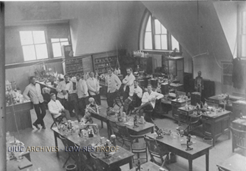 Men and Skeleton in Physiology Lab | University of Illinois Archives