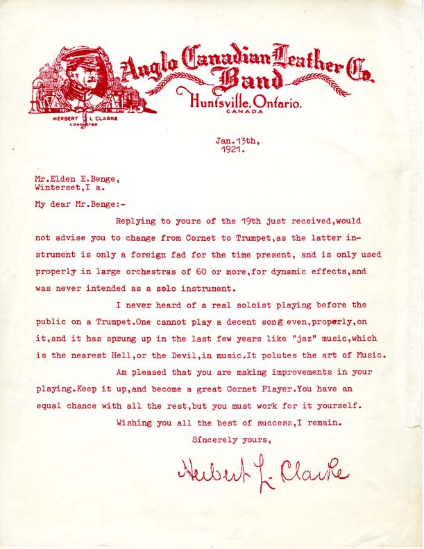 Letter from Herbert L. Clarke to Elden E. Benge | The Sousa Archives and Center for American Music