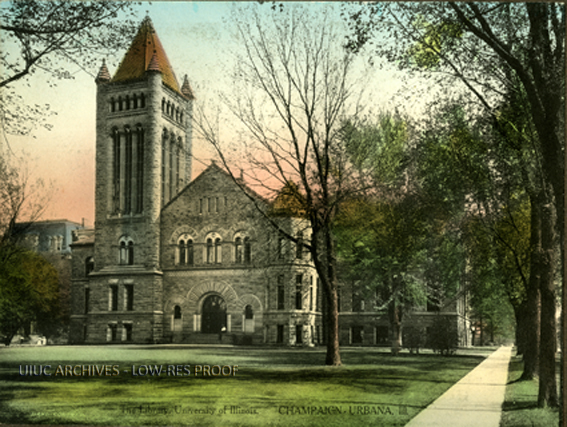 Artists rendering, in color, of Altgeld Hall when it was the Library at the University of Illinois.