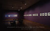 Image from Francesa Woodman: Photgraphic Work exhibit at the Krannert Art Museum. The exhibition lasted from January 22 to February 28, 1988. "E50P" is printed on the slide in black ink. Four empty chairs face each other around a coffee table. On the right side, a long purple wall has several photographs and black name plates. A large blue photograph hangs on the wall in the back.