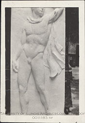 Relief of a naked man in a cape.
