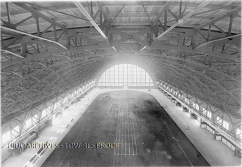 View of the interior of the Armory prior to any additions showing the support structure detail as well as the interior floor space.