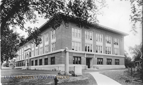 Photograph of the exterior of Lincoln Hall, as seen from the northeast. Photo published in the 1914 Illio, p. 34.